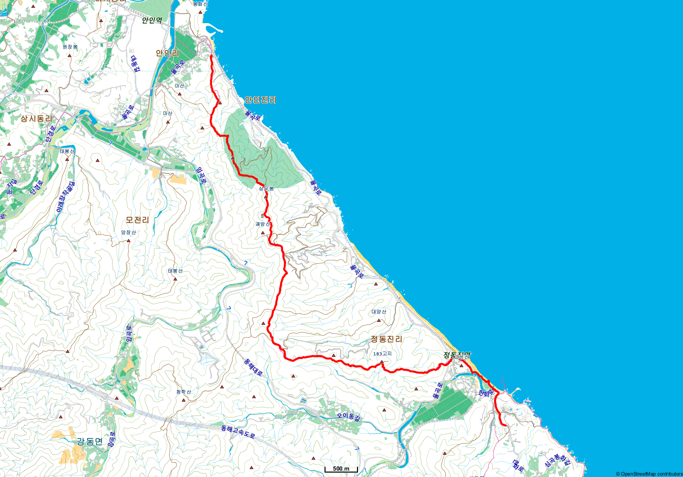 강원도 강릉시 안인진리/정동진리 (안인항-활공장-삼우봉-괘방산-183고지-정동진항)
