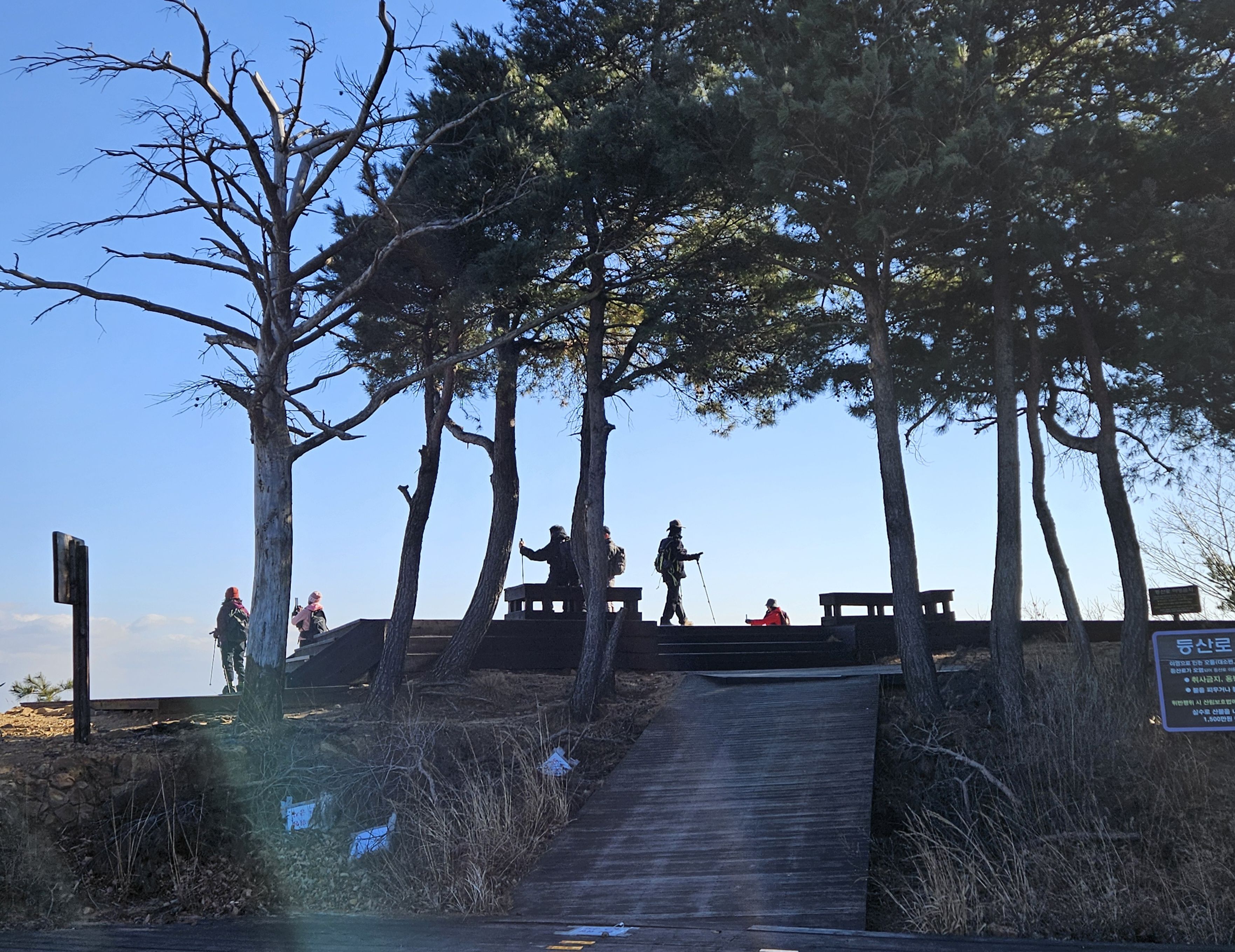 정상석 주변 따뜻한 햇볕아래 옹기종기 간식 과 휴식 하시는 회원님들도 행복이 뚝뚝...