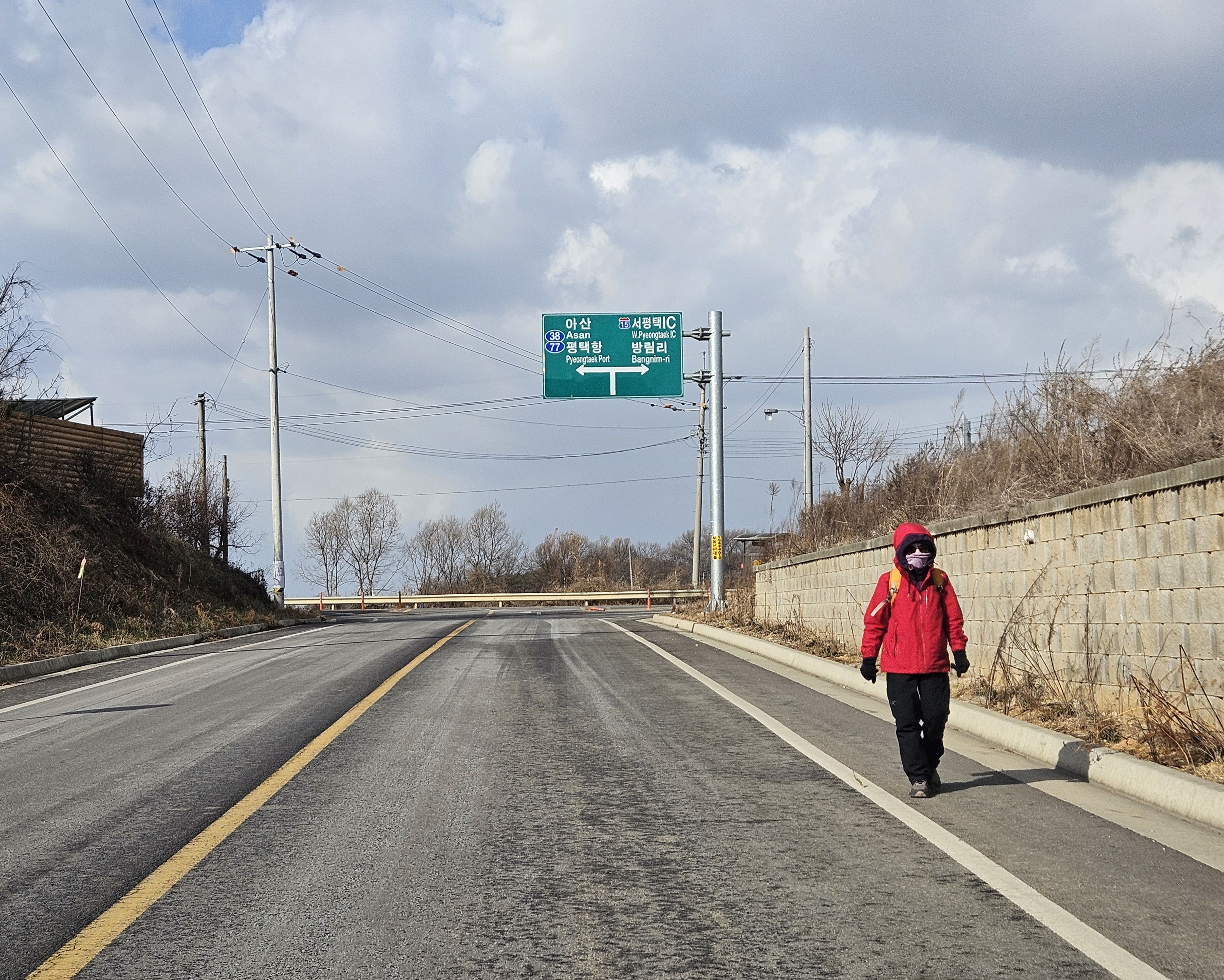 85코스 시작점 (오전 8시29분) 강풍불어 조금 단축 (평택국제대교 버스로 건너서 신왕터널 입구에서 걷기로..)