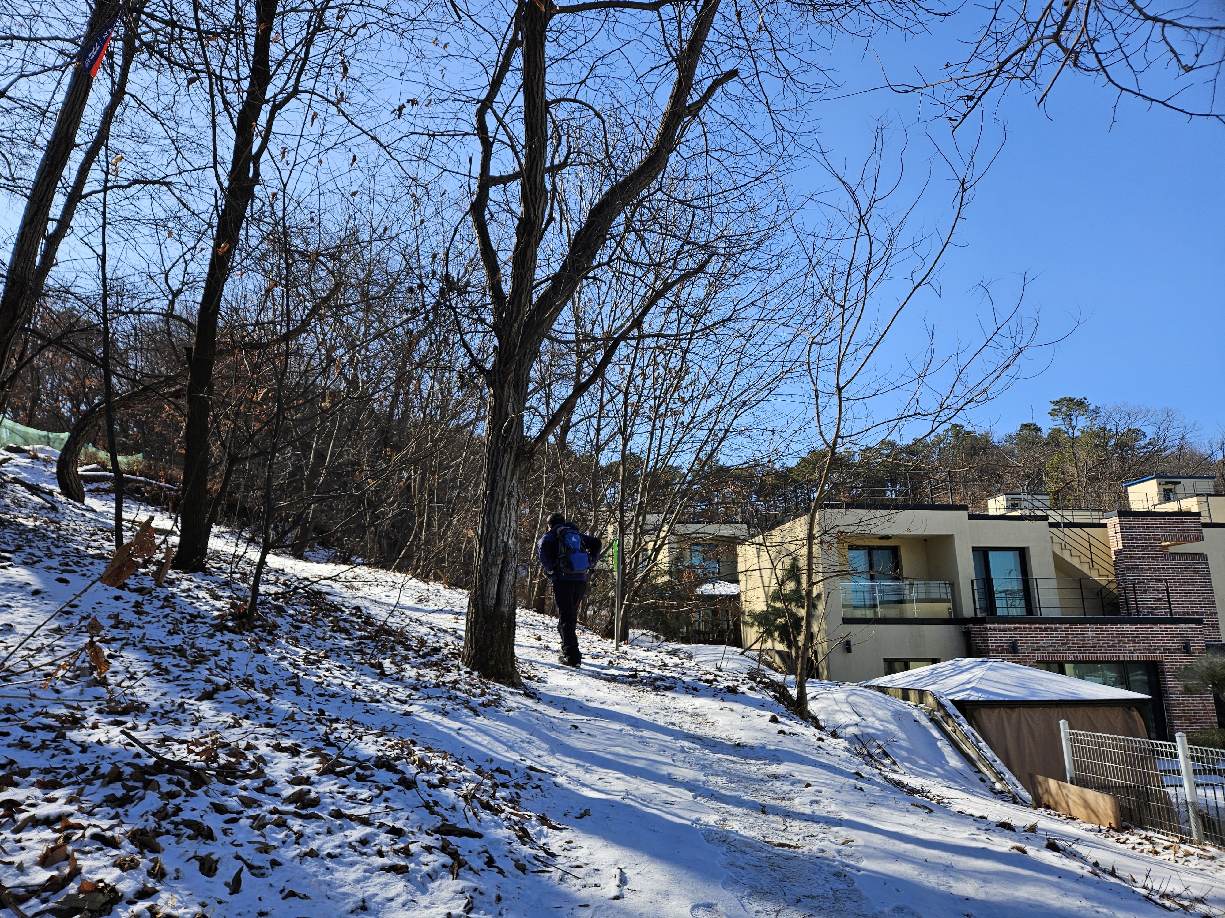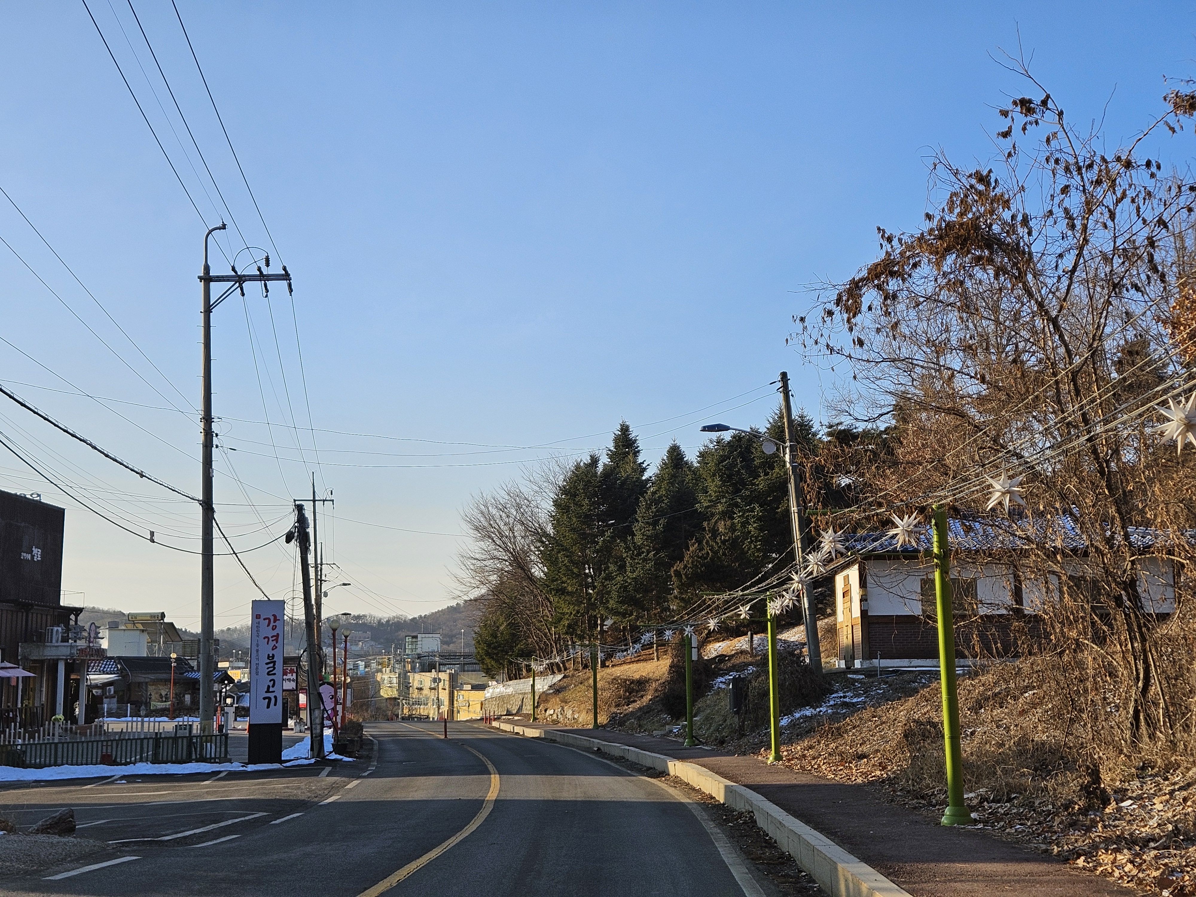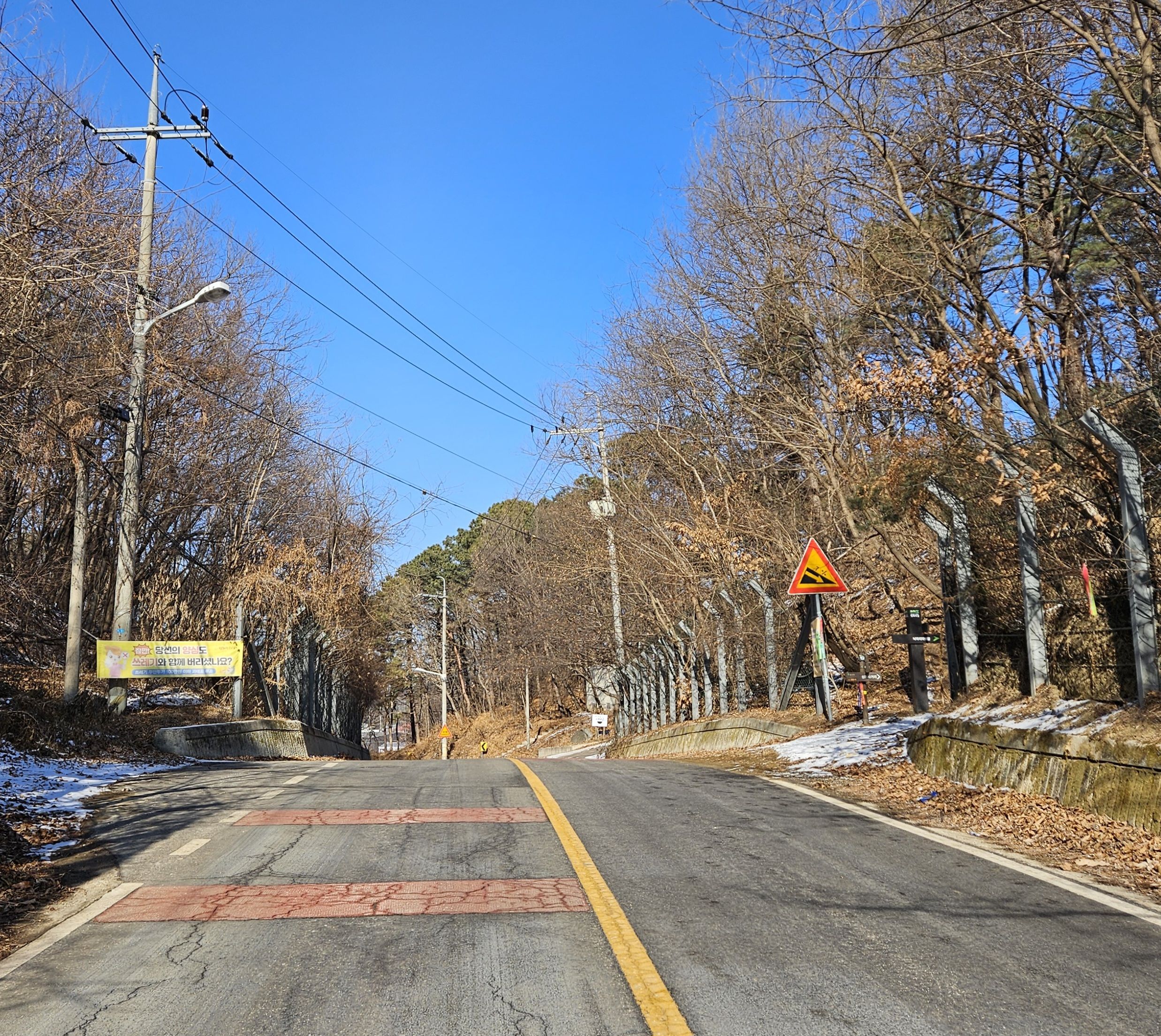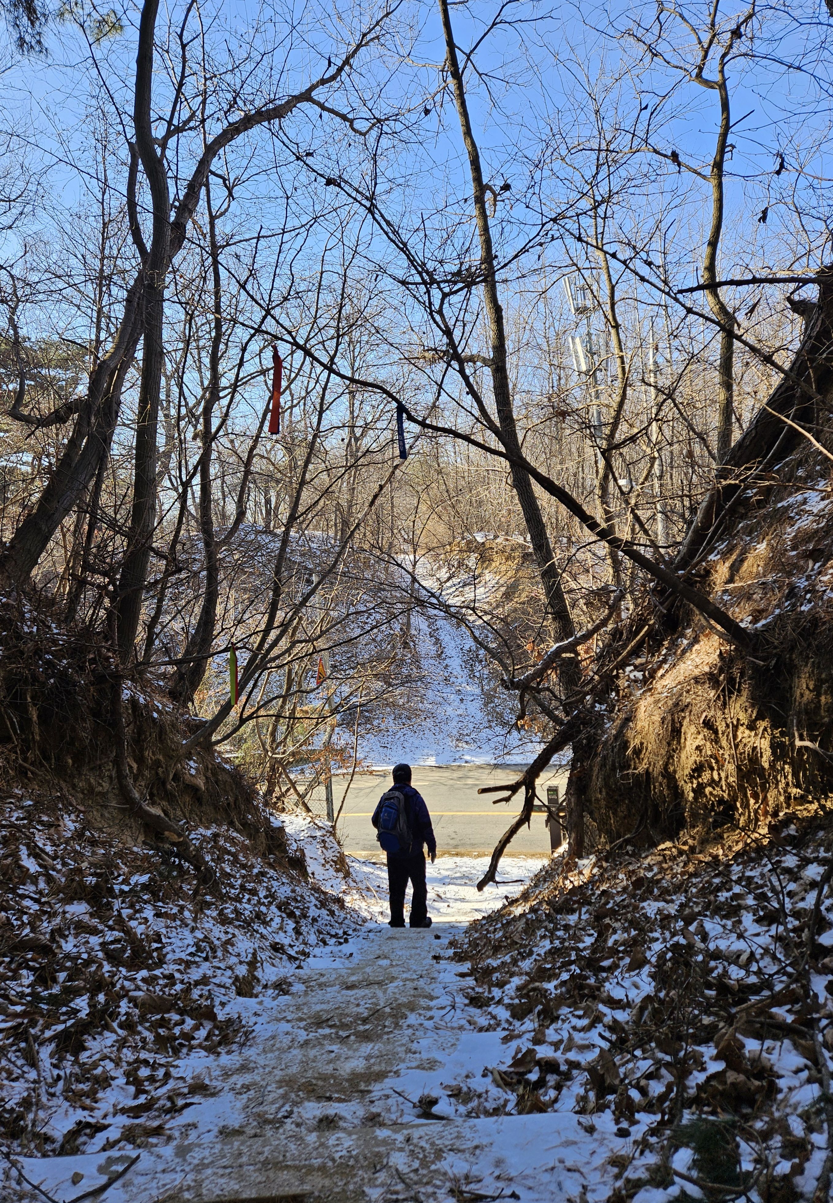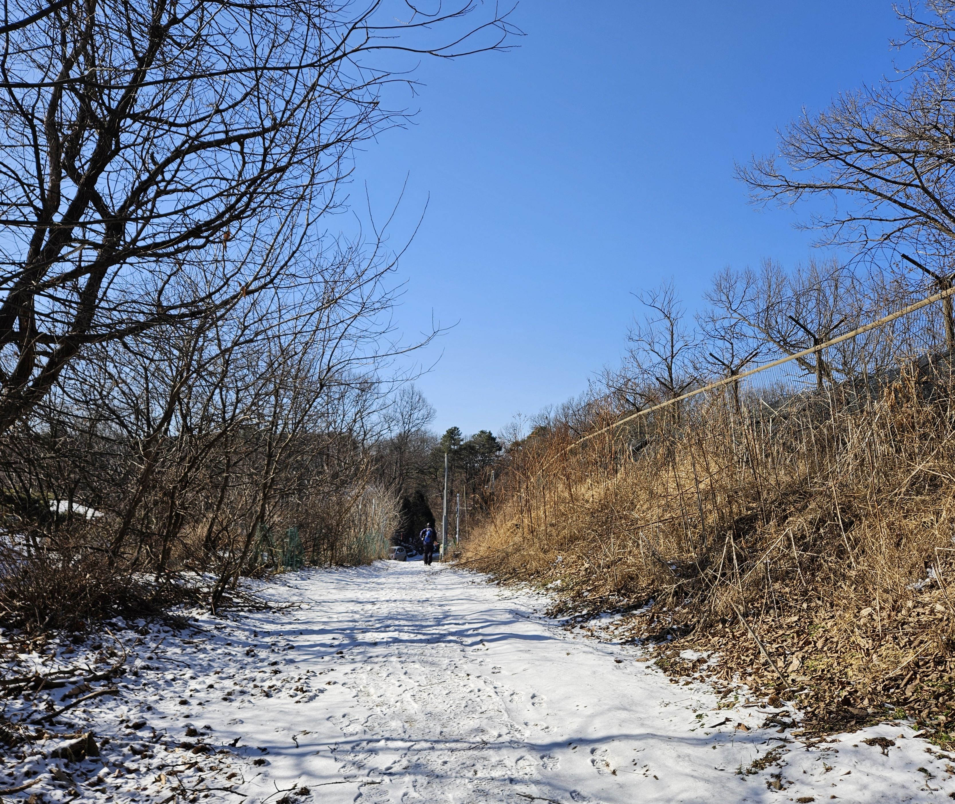 현지 오전 8시35분 하차 그늘진곳 많고 찬기운 돌아 춥긴 했었는데 하늘이 도와 구름없는 맑은날씨 햇빛까지 따사롭게 비춰준 덕분에 생각보담 훨 덜 추웠습니다. 시간이 지나갈수록 기온이 오르니 체감온도 는 더 따뜻하게 느껴졌고 긴장도 풀리면서 다소 편하게종점으로 안착.... 눈이 내린지 좀 지났지만 도로 곳곳에 녹지 않은눈 녹았다 얼었다 한 눈... 도사리고 있어 공포심 유발 했습니다만