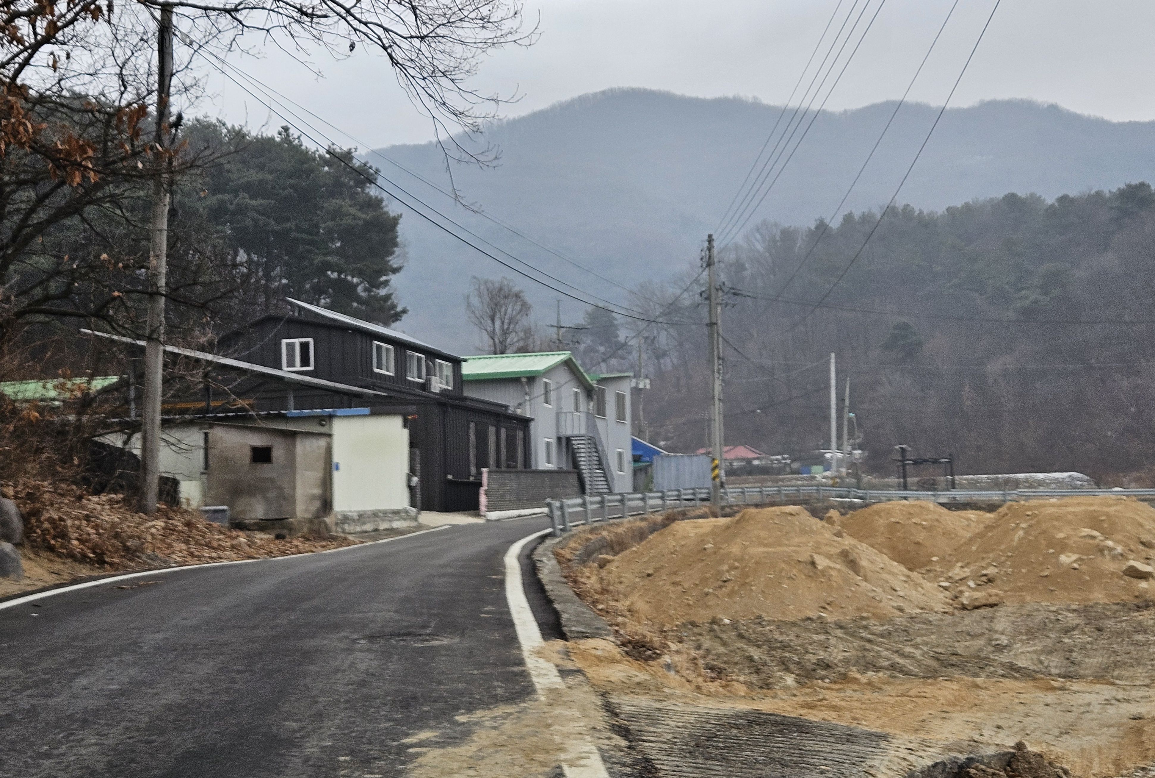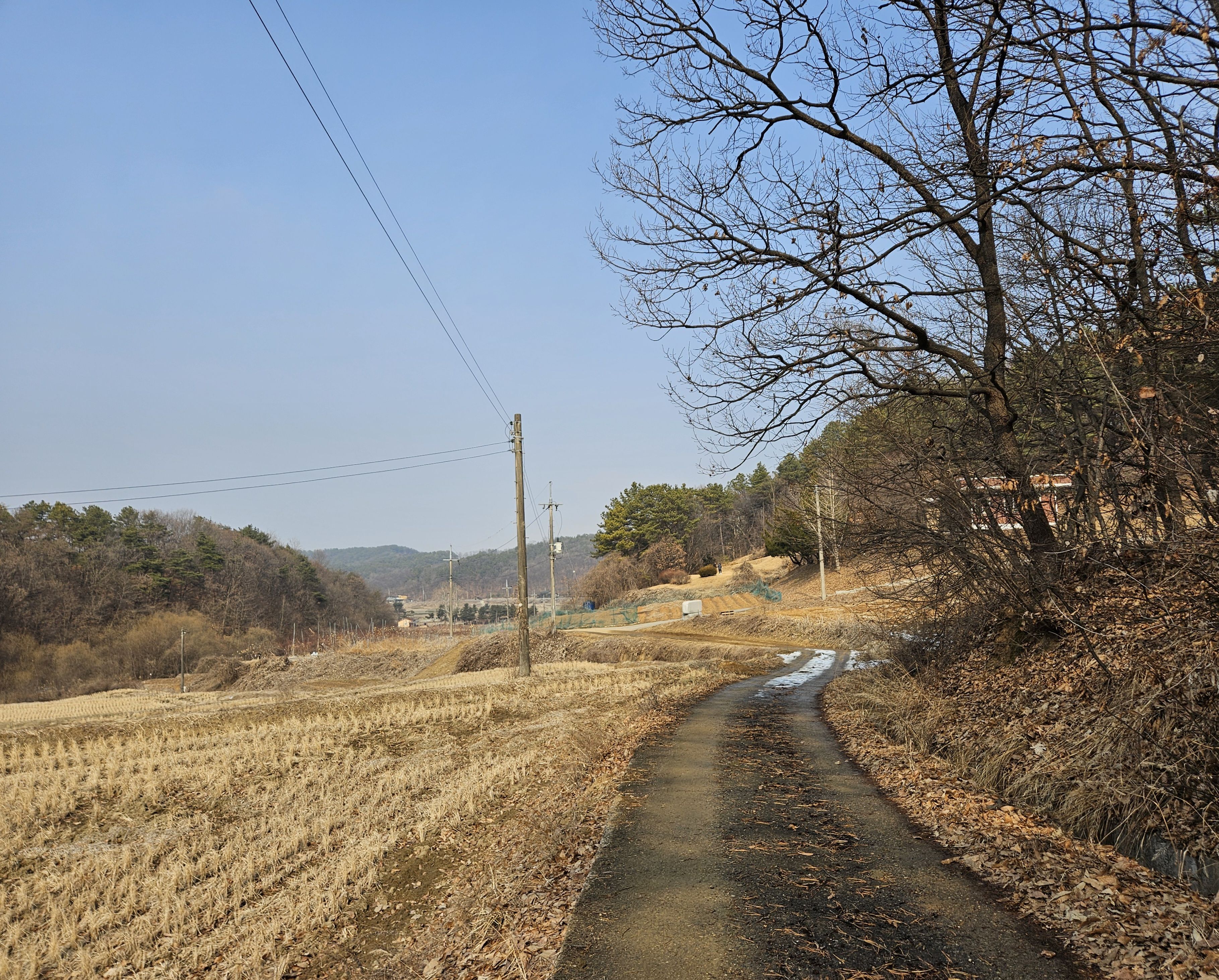 산길 더 진행하지 않고 마을길로 하산 (옥녀봉에서 약 33분 소요)